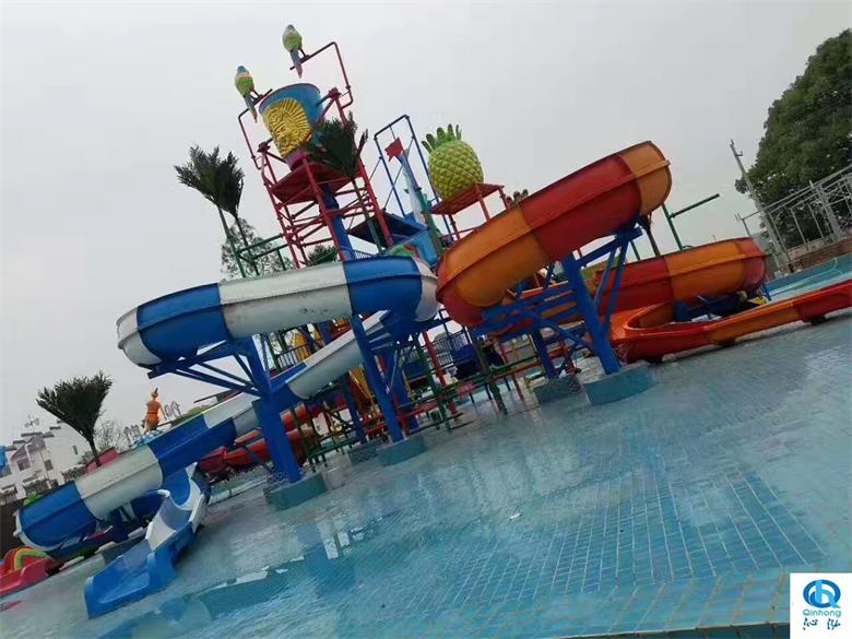 水上滑梯,其材质主要由玻璃钢和镀锌管组成,可根据客户的需求调整颜色方案。该类设备的优点实际上是玻璃钢产品的优点,主要有三方面。
