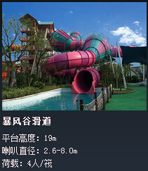 二、 水滑梯:不同高低,形状变化的水滑梯,提高一种高速运动给泳客,刺激性成份较其他项目为多。有多转弯的、自由下落的、有黑不见底的。